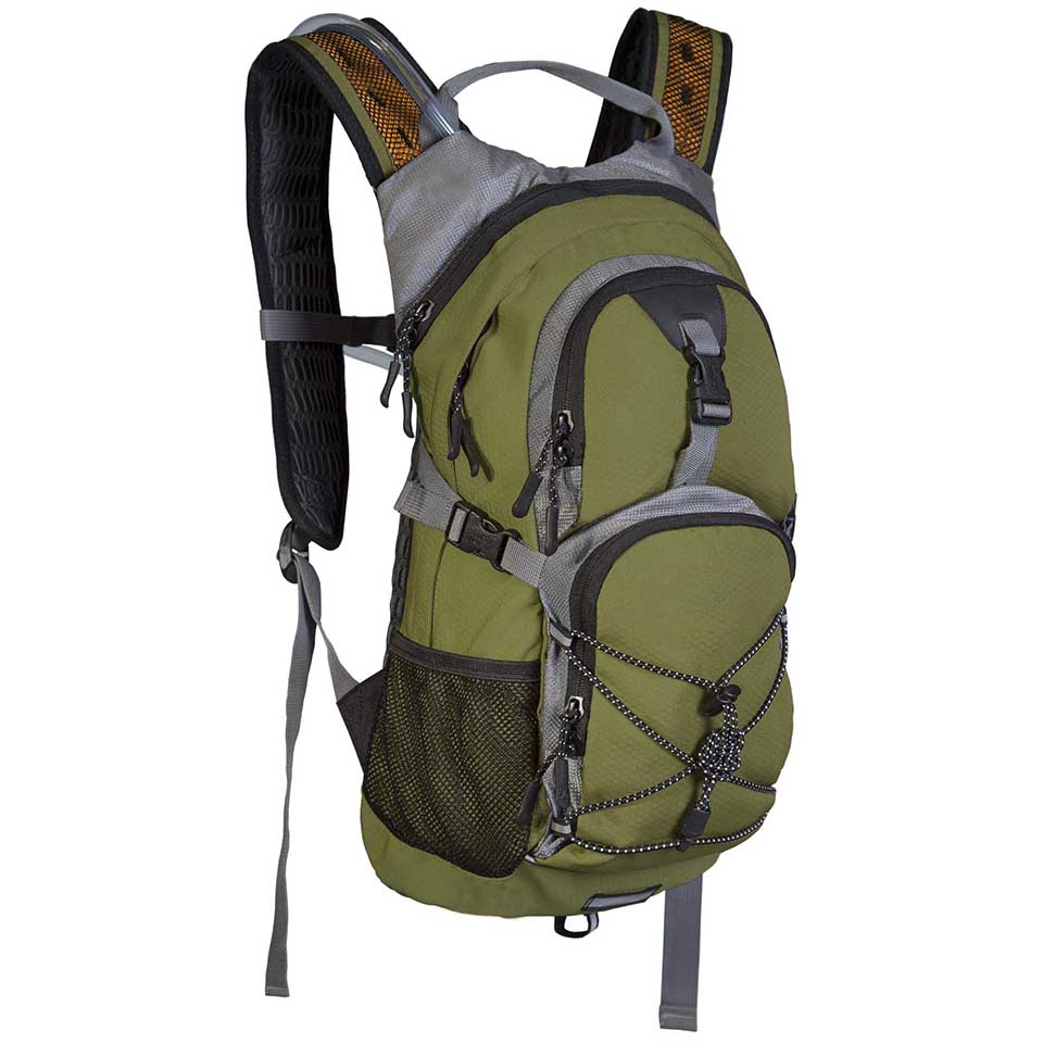 * FREE HYDRATION BLADDER: 2-Liter; Durable, kink-free sip tube and push-lock cushioned bite valve; Large 2-inch (5 cm) opening for ice and easy cleaning * CUSTOMIZABLE COMFORT: Backpack for men, women, and youth; Adjusts to fit all frames comfortably; Notched foam stabilizer and mesh covering means you can wear this pack for hours * TRUSTED QUALITY: Over 1,000 verified 5-star reviews testifying to the quality and design; Large main pocket protects gear, clothes, and lunch; Bungee cord system for cycling and climbing helmets |