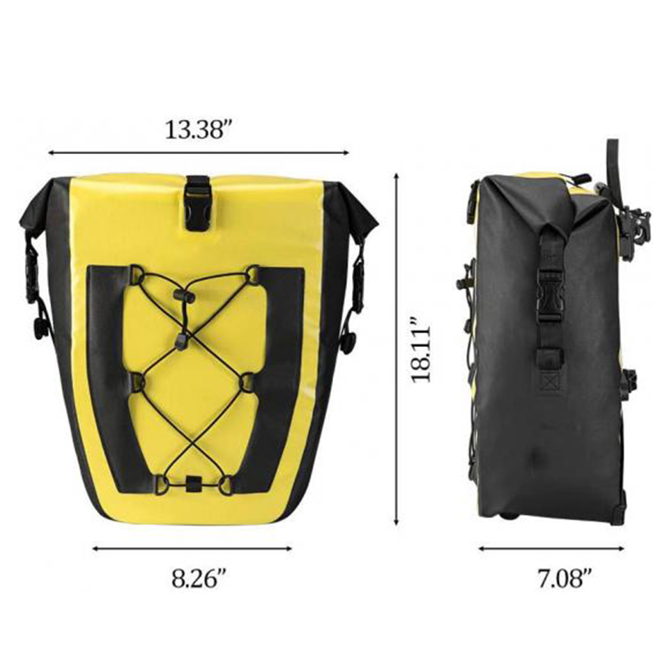 27L capacity each bag can holds your change of clothes or some essentials for the cycling trip. The mesh pockets inside the bag