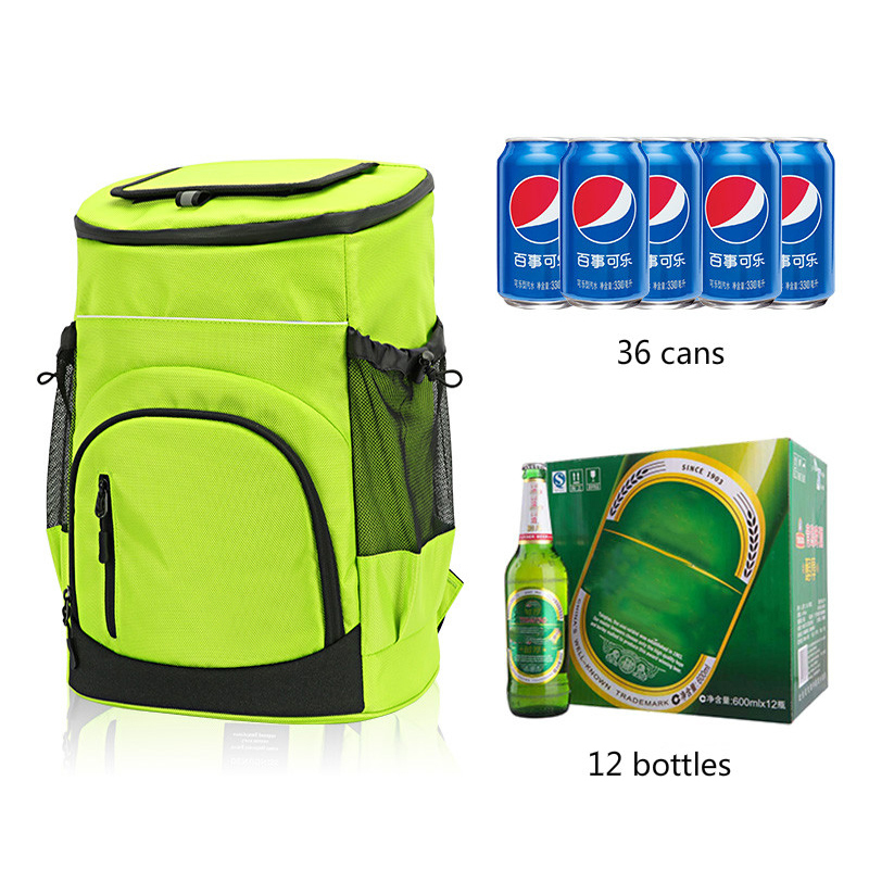 COOLING PERFORMANCE: Guarantee 16 hours at temperature below 15ºC with freeze packs (The duration will vary according to the environment temperature) LEAKPROOF: Thick layer of food-grade PEVA insulation materials inside to ensure the frozen things don't leak after melting LARGE CAPACITY & OPENING: Dimension: 43 x 31 x 17cm; Weight: 620g; About 22L, can hold at least 24 cans. Large opening makes you easy to access COMFORTABLE & PORTABLE: The breathable shoulder straps are very comfy to wear on your shoulders and back. Design with handles, can also be carried by hand. SUGGESTIONS: Don't put the ice directly into the rucksack to avoid cutting off the leak-proof material inside. We can use the freeze packs to keep everything cool all day. Good for beach trips, picnics, camping, hiking, swimming, etc.