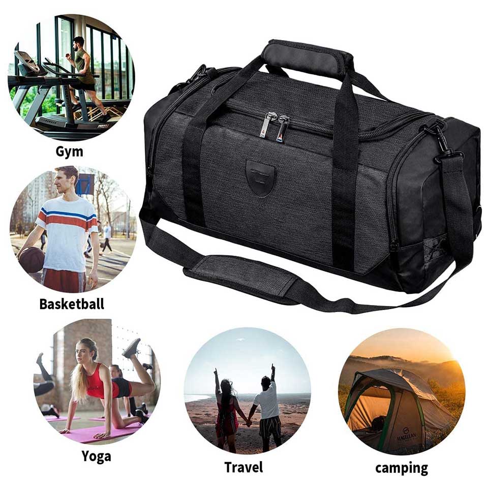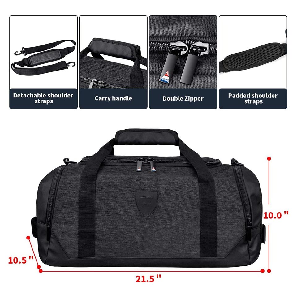 sweaty clothes to keep your main compartment dry. The bag is able to use as a Gym bag, Overnight bag, Weekend bag, Travel